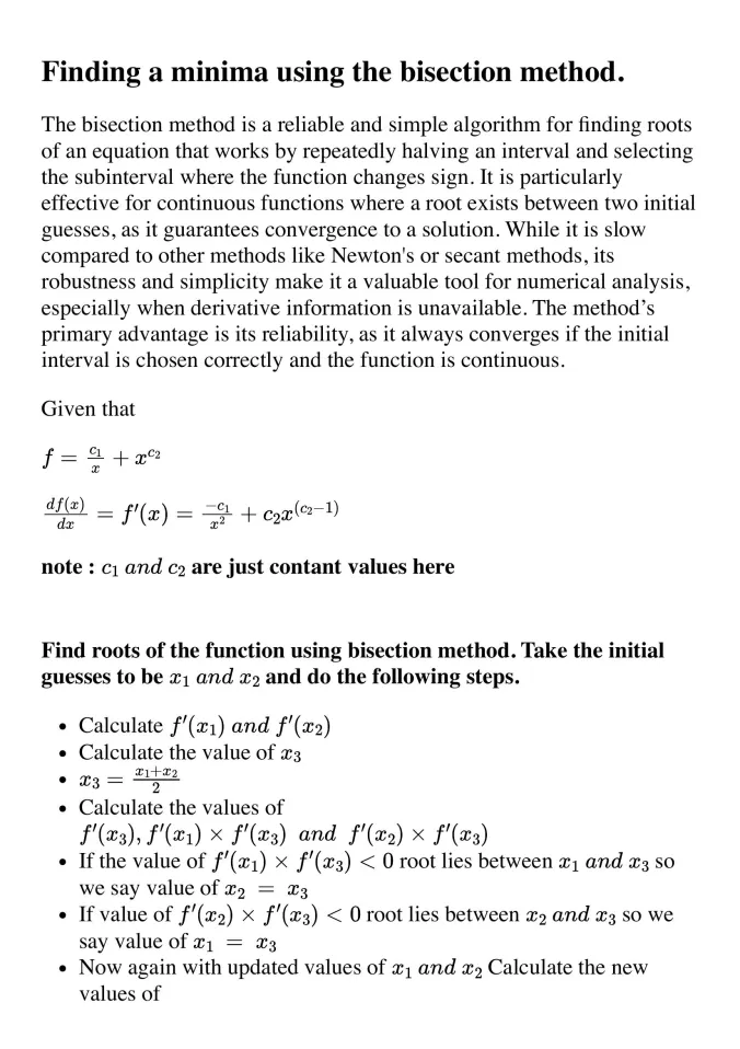 Finding Minima Using Bisection Method